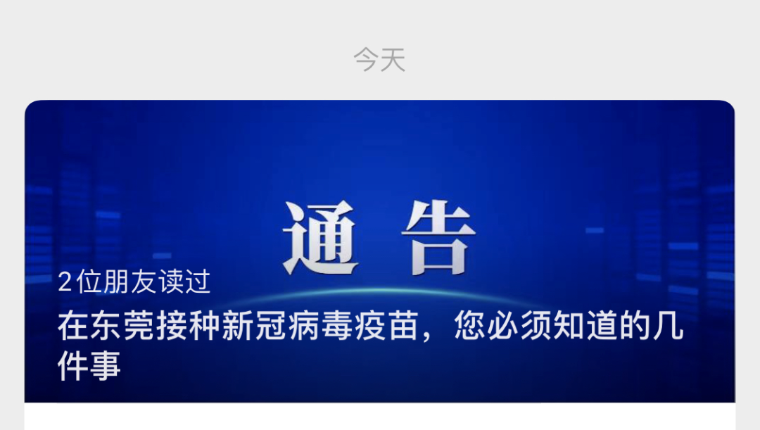 “东莞疾控”微信公众号昨天(5月28日)发布关于接种新冠疫苗的通告。