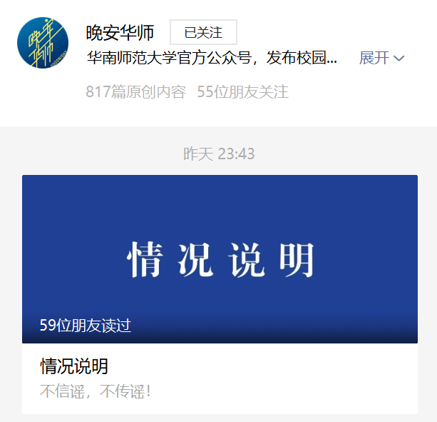 在此,特别提醒广大师生和网友不造谣、不信谣、不传谣;希望广大师生做好个人防护,以实际行动支持和配合学校疫情防控工作。