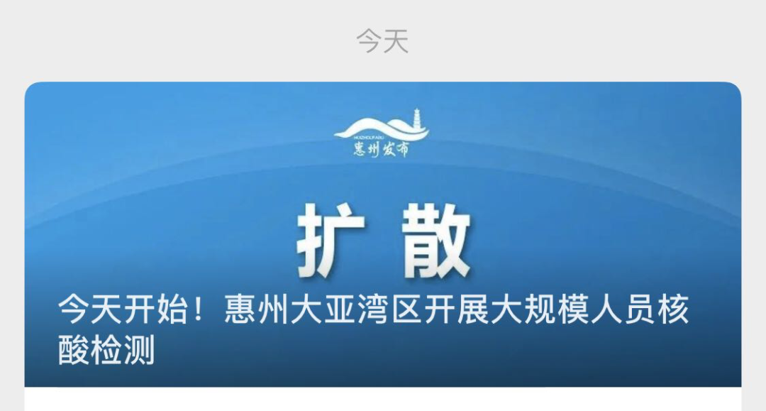 惠州大亚湾区新型冠状病毒肺炎疫情防控领导小组(指挥部)关于开展大规模人员核酸检测的通告