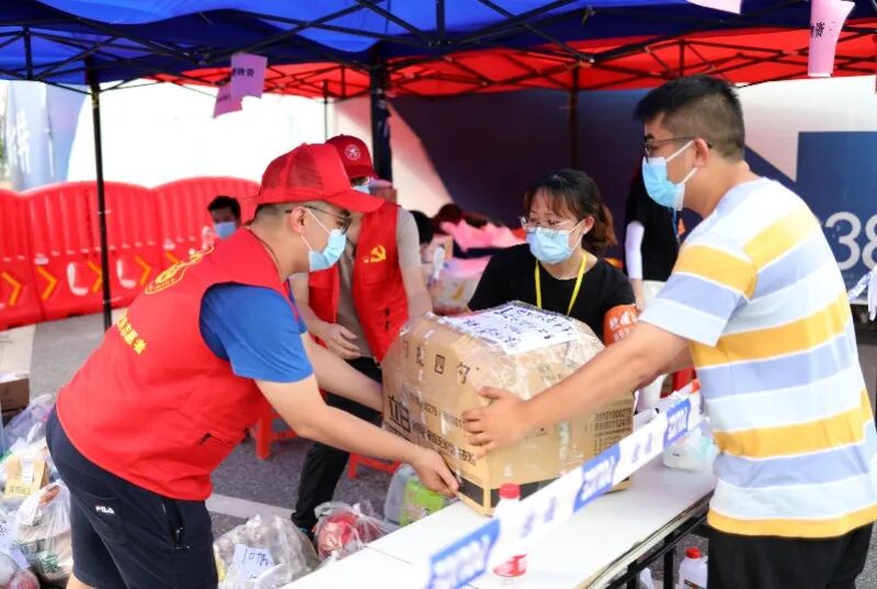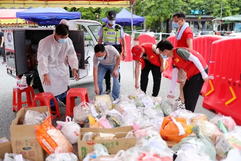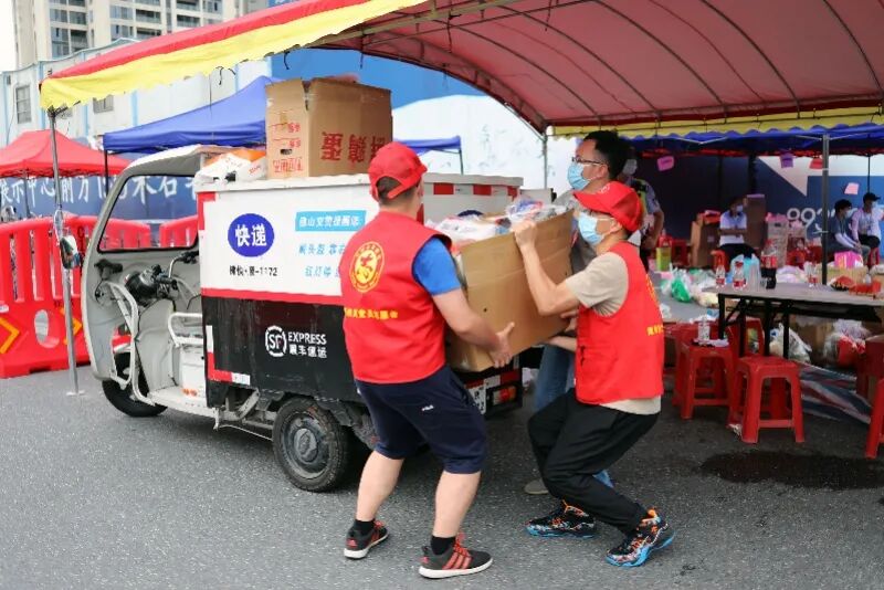 驻守在这里的有将近20名志愿者,他们当中有来自桂城团委、义工联的志愿者,也有来自区委组织部的党员志愿者,还有自动请缨来帮忙的热心人和快递小哥。他们分工明确。有的负责接收各方送来的快递外卖,有的负责接收社会各界捐赠的防暑物资,有的负责按楼栋分拣物品,有的负责驾驶三轮车运送物资。
