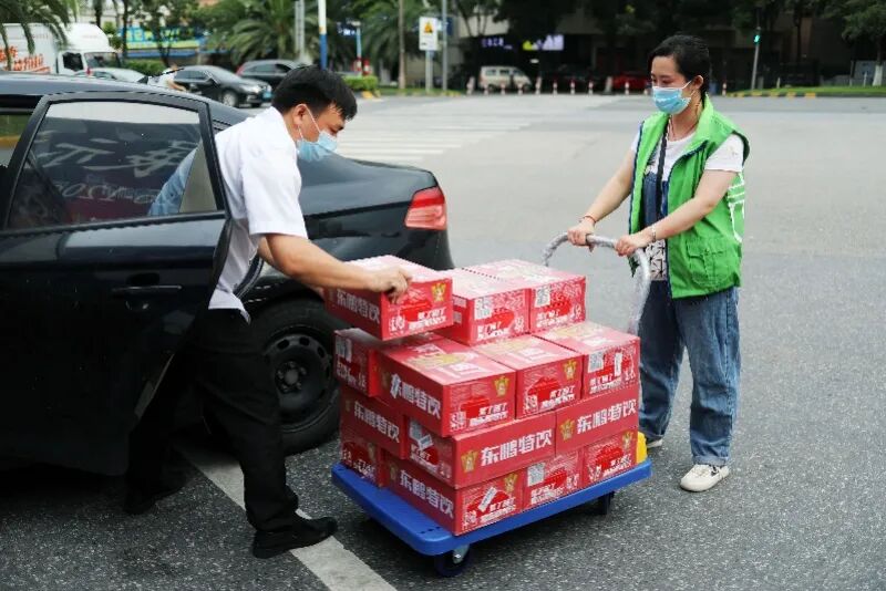 “7栋的东西比较多,先送一趟7栋的吧。”殷伟文说着就提起了两大袋食物,码放到三轮车上,其他的志愿者也纷纷动了起来,你拎一个纸箱子,他拿几个大袋子,装满了一车,大家都汗流浃背。