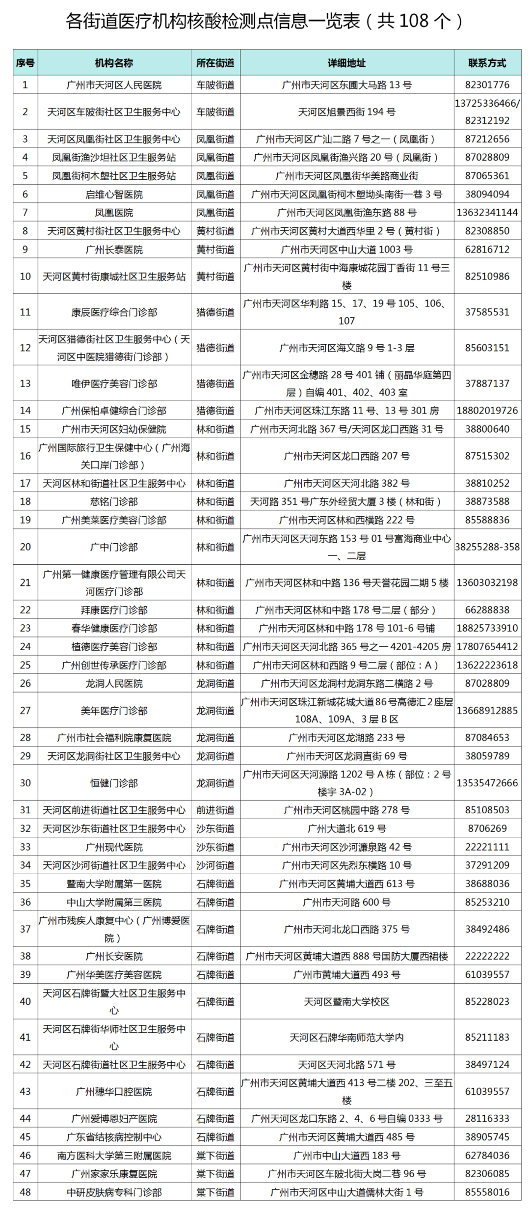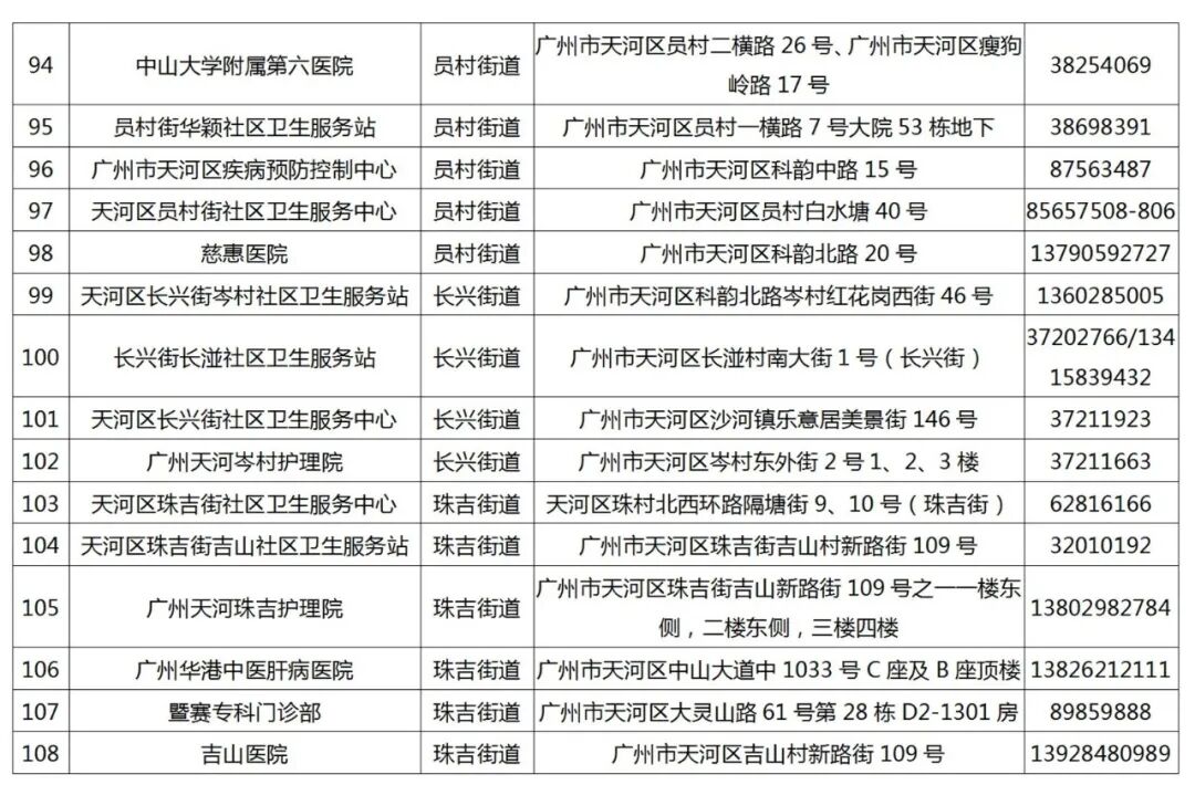 108个医疗机构核酸检测点