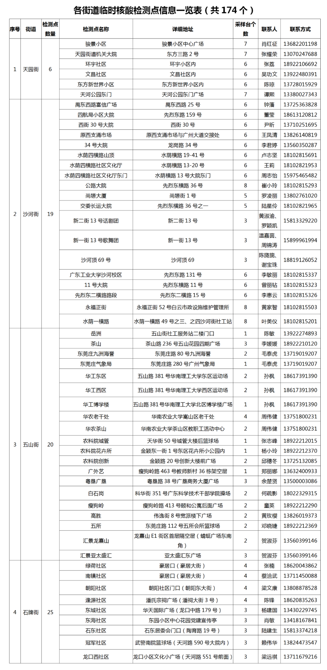 174个临时核酸检测点