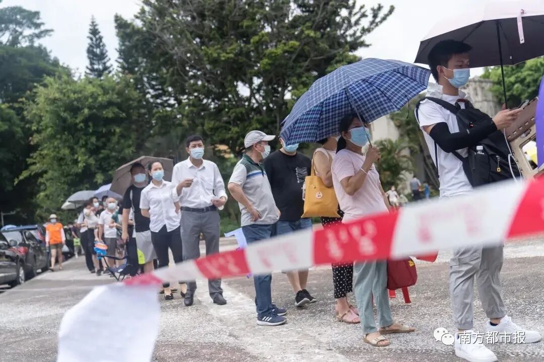 5月30日,番禺区进一步扩大核酸筛查范围,抽调1000名医护人员,组成100个核酸筛查队伍,在洛浦街道,石壁街道进行全员核酸筛查,南村镇的两个村、一个居委会,钟村街的锦绣生态园,以及石碁镇的低涌村、海傍村对市民群众进行核酸筛查。