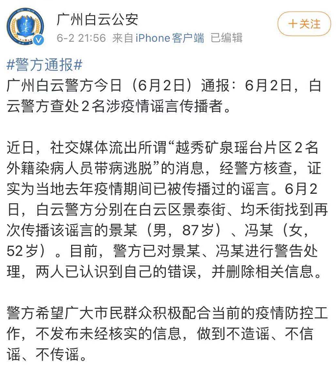 昨日,广州白云警方也对此进行了通报。