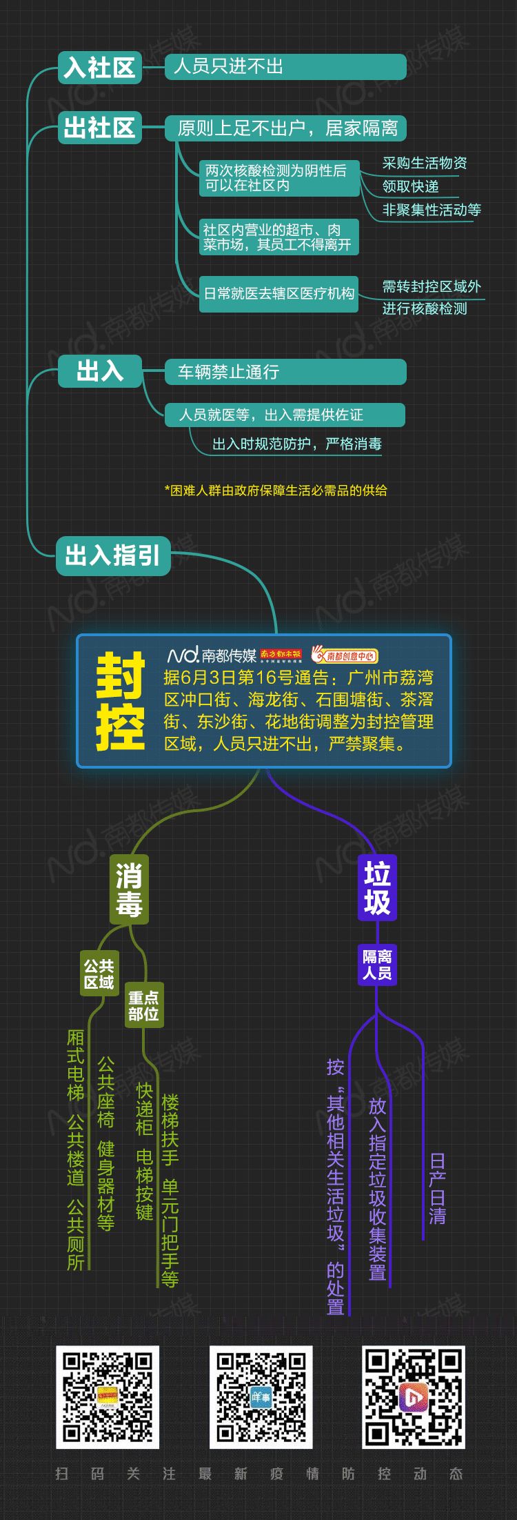 二、将荔湾区冲口街、海龙街、石围塘街、茶滘街、东沙街、花地街调整为封控管理区域,人员只进不出,严禁聚集(管理措施按第15号通告附件3执行)。