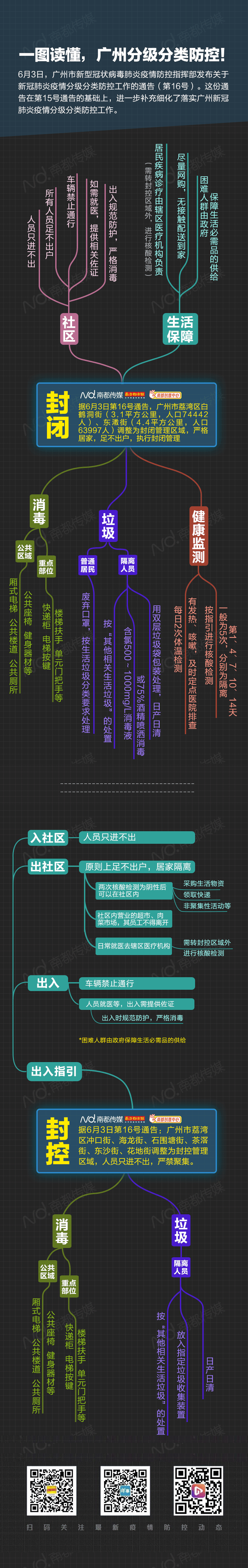 6月3日,广州市发布第16号通告,荔湾区三条街道纳入封闭管理区,对封闭管理区的服务人数从原来的11万增加到18万。