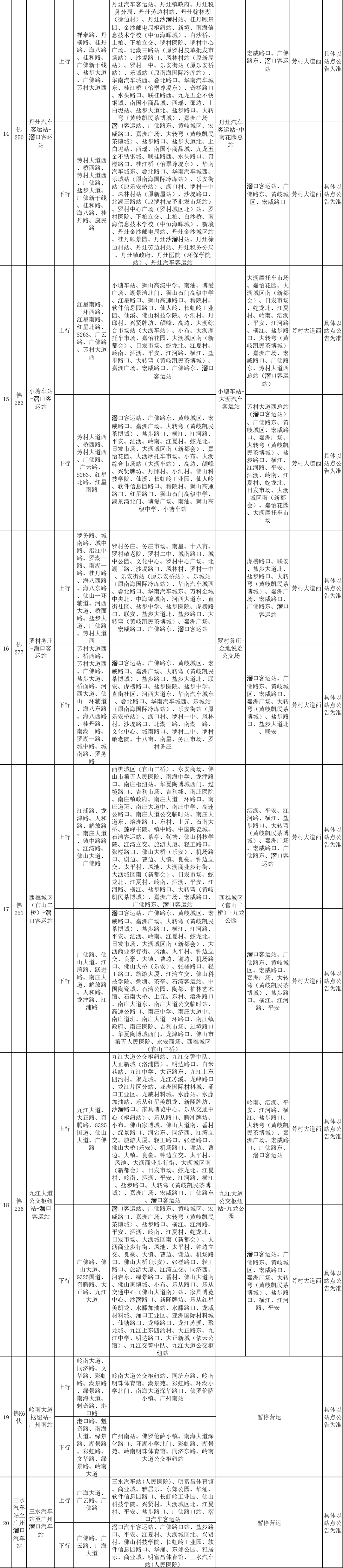四、禅城去往广州南站的K6快线、三水汽车站至广州滘口汽车站的城巴线路暂时停止营运。