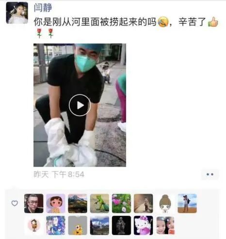 短短时间里,胡医生的视频在朋友圈里被同事们疯狂转发,同在广州市红十字会医院工作的妻子闫静晚上回家后才看到,她转发并调侃:你是刚从河里面被捞起来的吗?