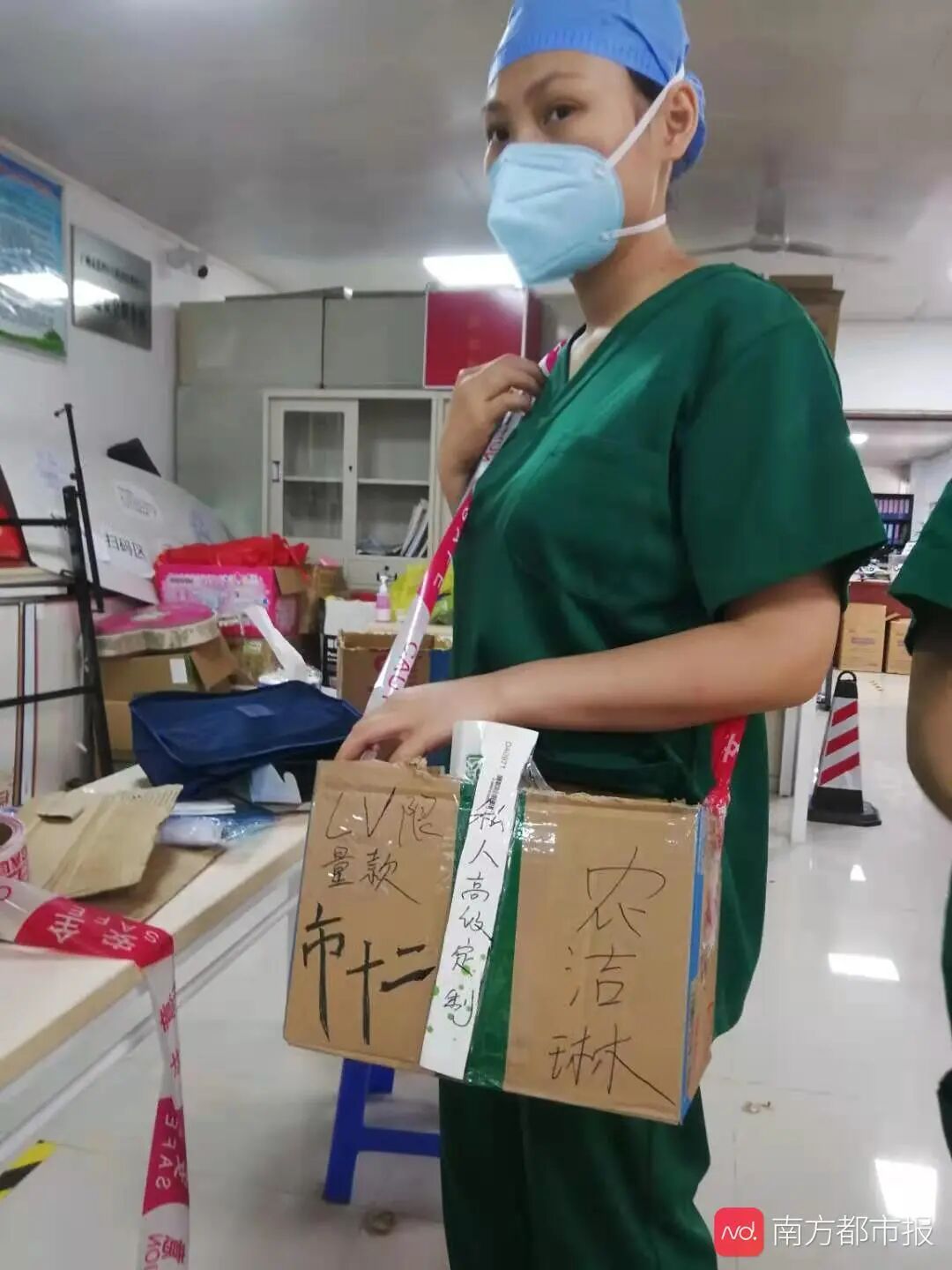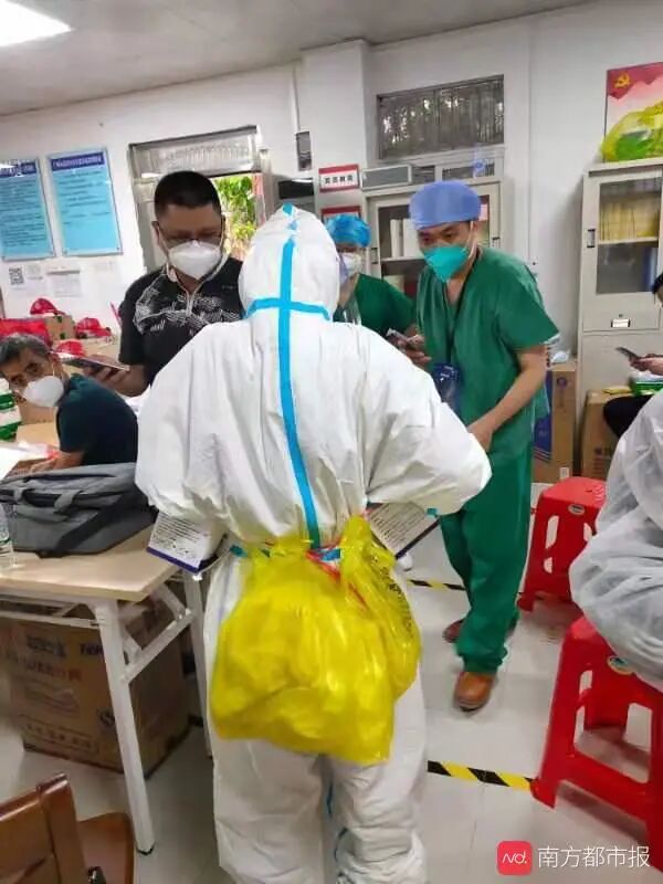 该区域实行3人小组上门采集核酸形式。广州市第十二人民医院支援队伍负责的观鹤小区为重点疫区,且大部分居民楼均无电梯,进入居民楼前,一定要将所有采集用物品带齐。