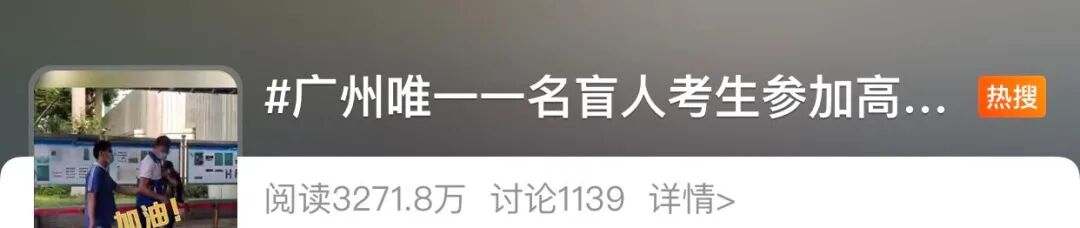 今日,“广州唯一一名盲人考生参加高考”冲上热搜。