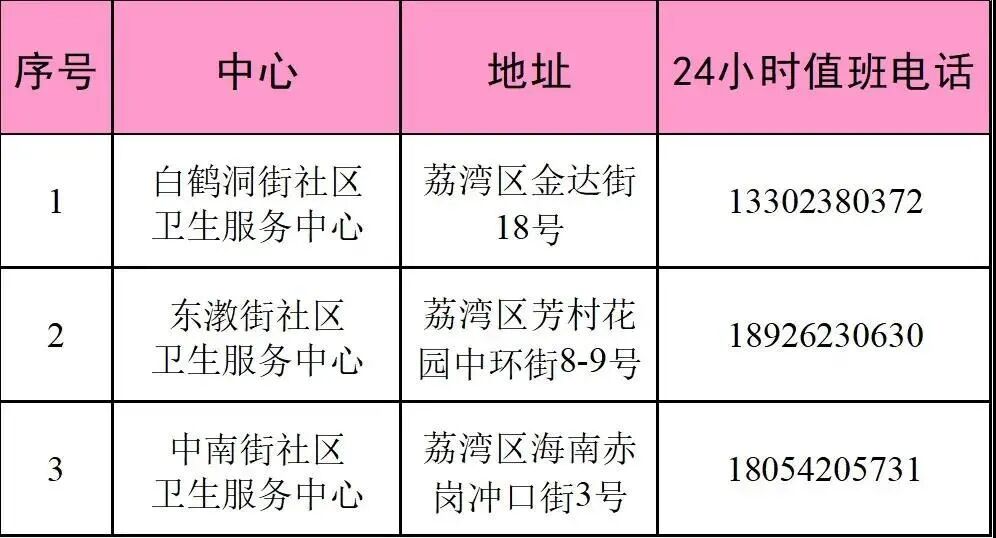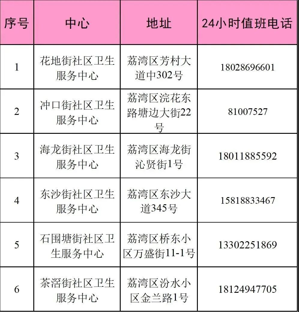 荔湾区封控区域社区卫生服务中心值班联系电话