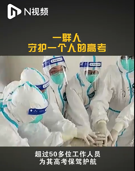 2021年高考,广州一名特殊考生在胡锦超职校隔离考点参加高考。广东佛山顺德区教育局会同卫健、疾控、公安等部门通力合作,共投入超过50多人紧密联动配合,为该考生提供暖心高考服务。昨天(9日)上午,该考生已顺利完成所有的科目考试。