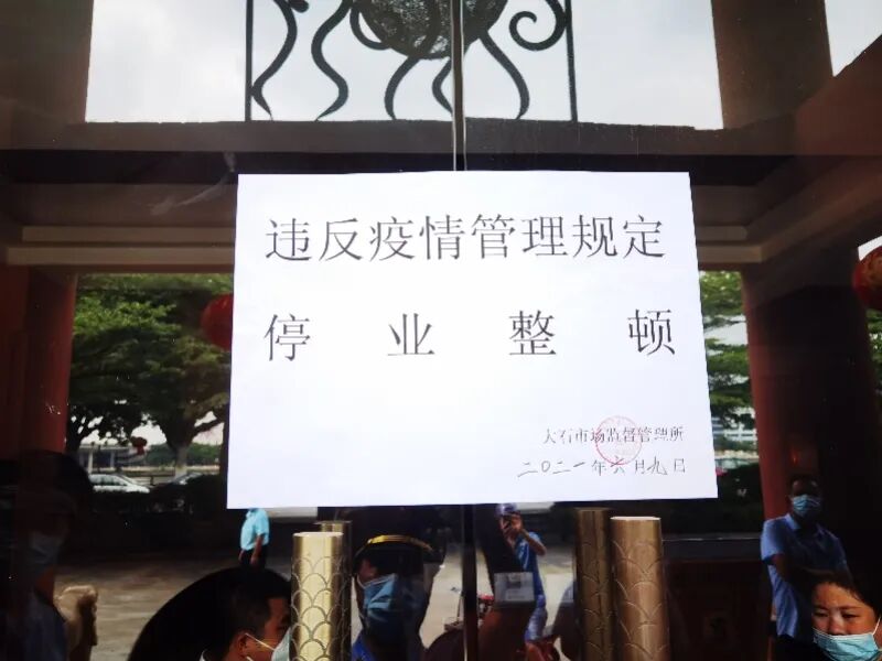 番禺区市场监管局执法人员在涉事单位核查发现,该店虽已在门口显著位置张贴“禁止堂食”告示,但在其2楼的2个房间内,分别设置了多张餐桌,容易出现人群聚集的情况,违反疫情防控相关规定。执法人员当即责令该店马上停业整顿。