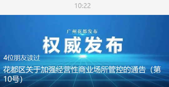 今天(6月10日)上午,广州花都发布微信公众号发布《花都区关于加强经营性商业场所管控的通告(第10号)》,6月10日起,全区所有社会餐饮服务单位(含提供堂食的食品销售单位)暂停堂食服务。