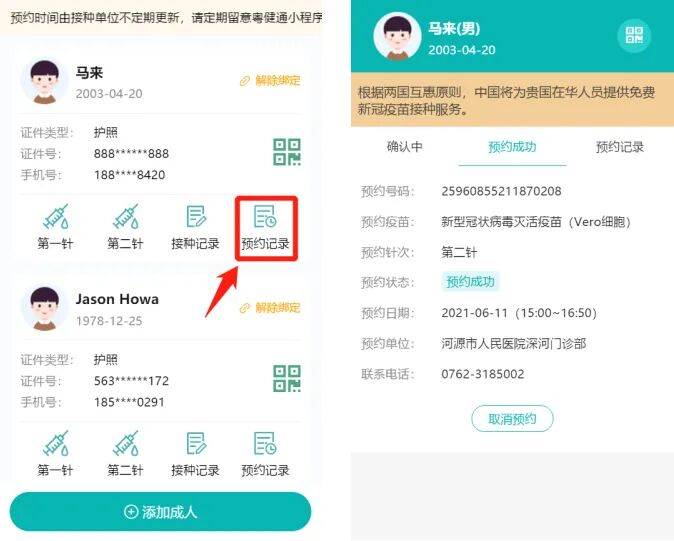 并根据个人接种情况进行预约