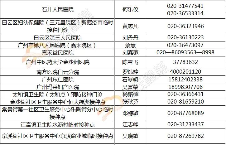 白云区新冠病毒疫苗接种点设置情况