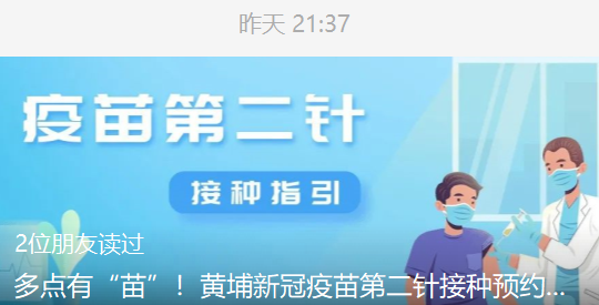 黄埔第二针新冠疫苗接种陆续重启
