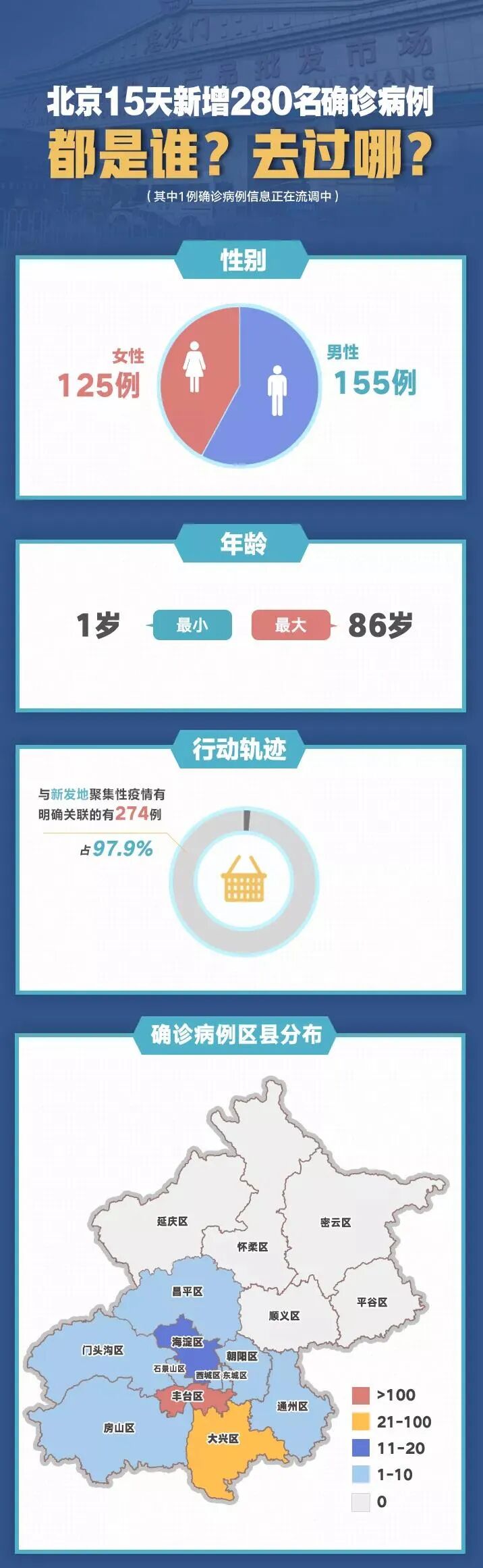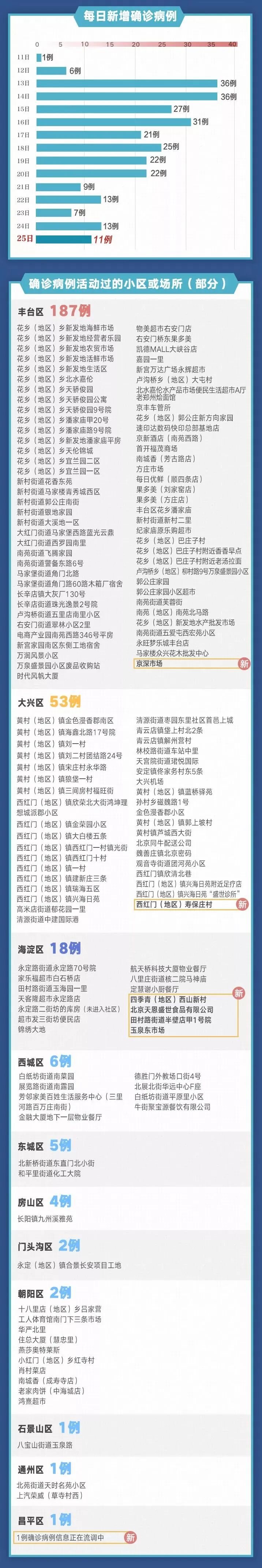 据北京卫健委,6月26日0时至24时,新增报告本地确诊病例17例、无症状感染者4例,无新增疑似病例;无新增报告境外输入确诊病例、疑似病例、无症状感染者。6月11日0时至6月26日24时,累计报告本地确诊病例297例,在院297例。尚在观察的无症状感染者25例;无新增报告境外输入新冠肺炎确诊病例、疑似病例和无症状感染者。新增确诊病例中,丰台区15例、大兴区2例。