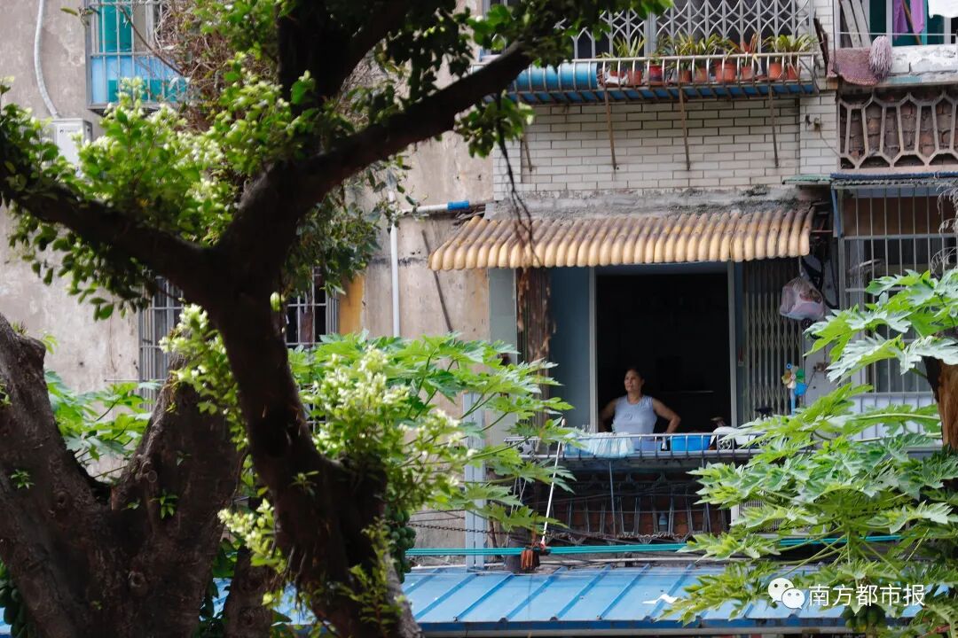鹤园小区的居民回到家站在阳台上。南都记者 何玉帅 摄