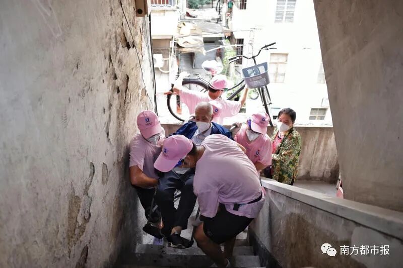 志愿者送着行动不便的隔离居民回家。南都记者 黎湛均 摄