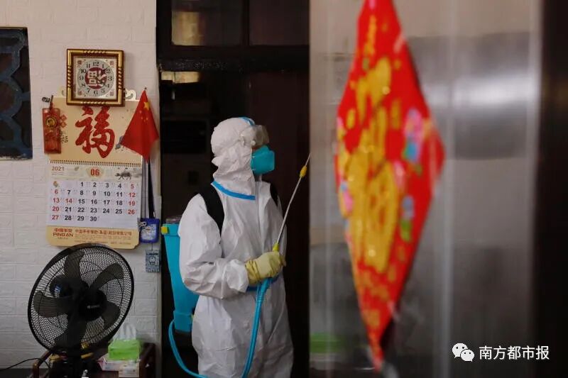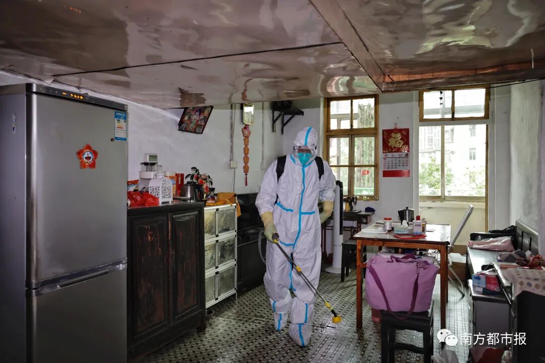 防疫人员正在对隔离居民的房屋消毒。南都记者 黎湛均 摄