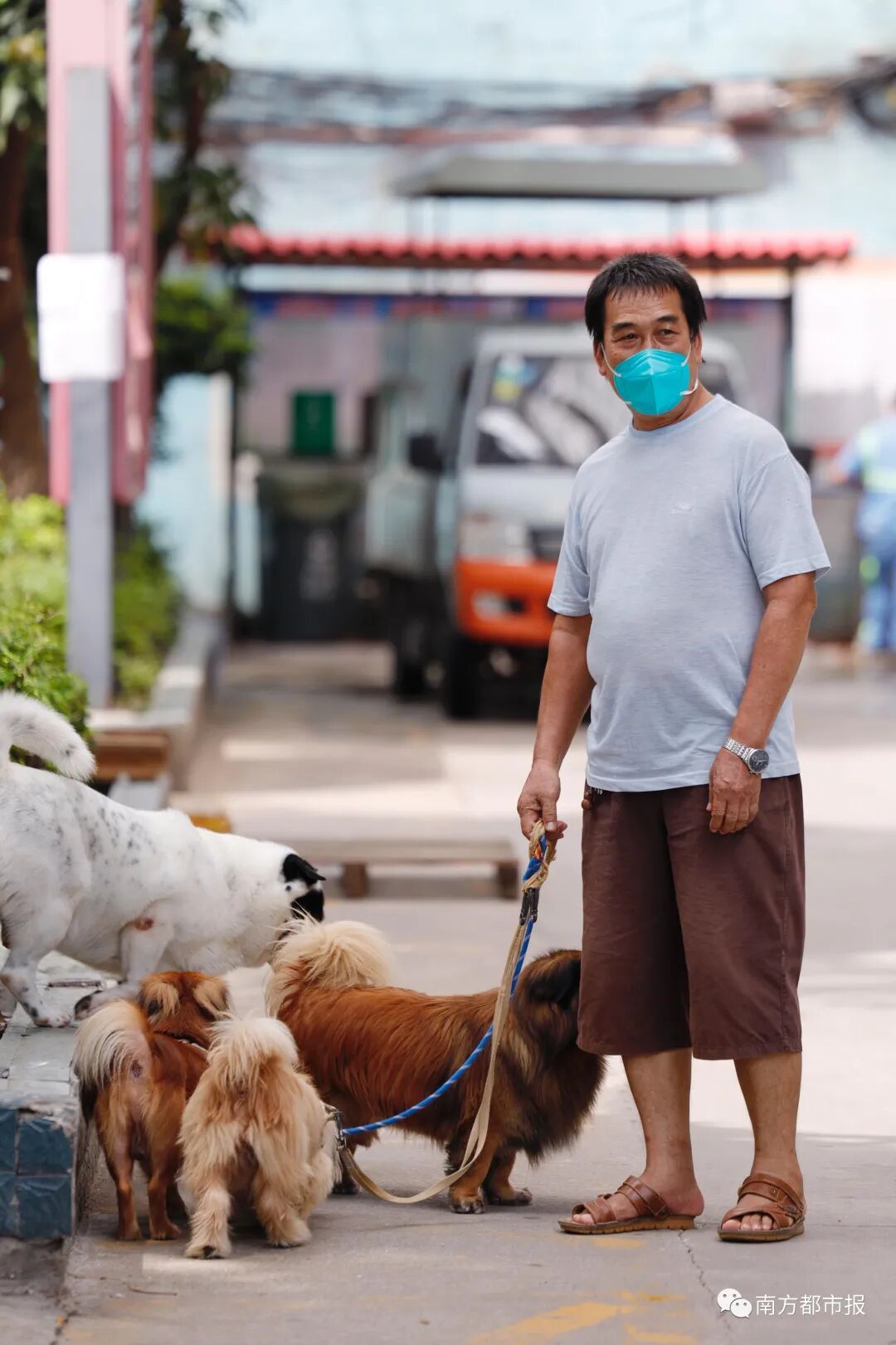 鹤园小区的居民在能够下楼活动后,每天都下楼遛狗。南都记者 何玉帅 摄