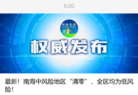 另据佛山发布8时02分消息,至此,此轮新冠肺炎疫情佛山中风险地区正式清零,佛山全市均为低风险地区。
