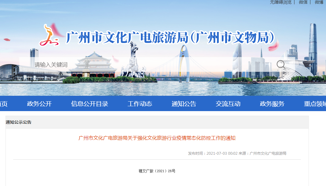 广州市文化广电旅游局关于强化文化旅游行业疫情常态化防控工作的通知