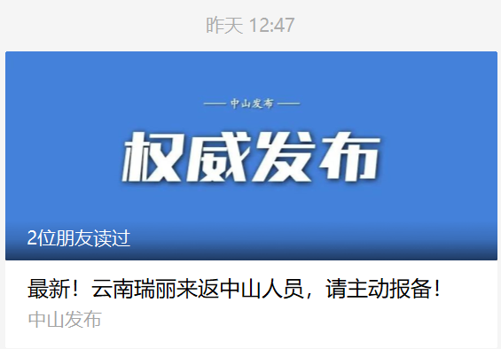云南瑞丽来返中山人员,请主动报备!