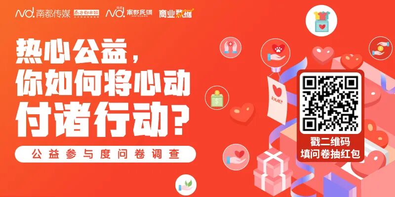 南方都市报开展“2021年公益参与度”问卷调研,戳链接,诚邀您如实填写,共同助力社会公益水平提升。
