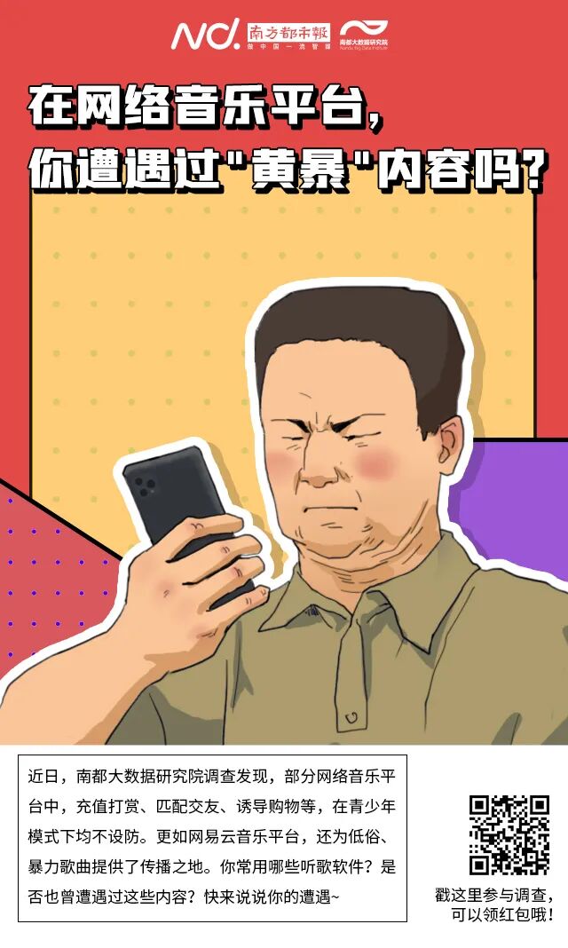 近日,南都大数据研究院调查发现,部分网络音乐平台中,充值打赏、匹配交友、诱导购物等,在青少年模式下均不设防。更如网易云音乐平台,还为低俗、暴力歌曲提供了传播之地。你常用哪些听歌软件?是否也曾遭遇过这些内容?戳链接,快来说说你的遭遇~