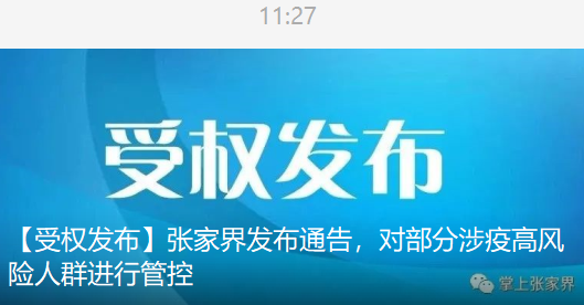 今天(7月28日)中午,湖南张家界疫情防控指挥部办公室发布通告: