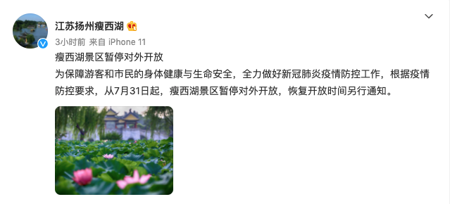 据南京文旅,7月30日,市文旅局出台《关于进一步加强全市文化旅游场所疫情防控工作的紧急通知》(以下简称《通知》)。《通知》要求,在继续做好全市博物馆(纪念馆)、图书馆、文化馆、美术馆、电影院、网吧、KTV、游艺、演出等场所及旅游景区室内区域暂停向市民、游客开放同时,自7月31日起,暂停开放旅游景区室外区域。