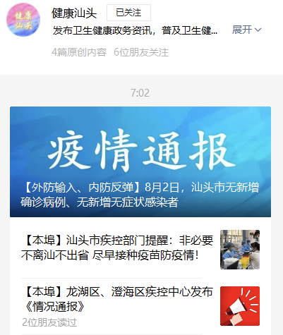 今天(3日)早晨,据健康汕头微信公众号消息,广东省汕头市龙湖区、澄海区疾控中心发布《情况通报》,发现有北京新冠肺炎病例密切接触者。