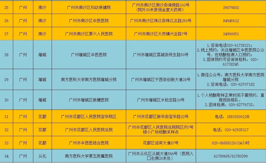 为不断满足市民群众采集检测核酸需求,广州市即日起指定34家核酸检测服务点,为市民提供24小时全天候核酸样本采集服务。