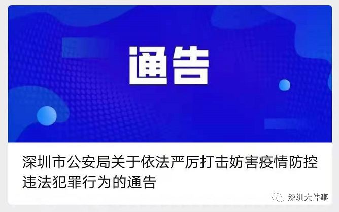 值得注意的是,昨天(8月8日),深圳市公安局发布《深圳市公安局关于依法严厉打击妨害疫情防控的违法犯罪行为的通告》,对不报、瞒报、谎报病情、不按规定佩戴口罩且不听劝阻,拒不配合体温检测、编造或者故意散布、传播虚假涉疫信息等行为进行严厉打击。