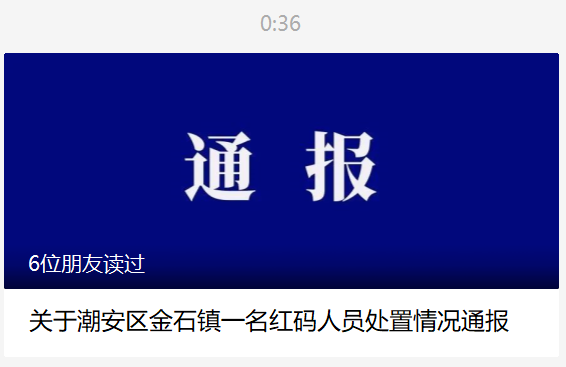今天(8月10日)凌晨,广东潮州市“潮安发布”发布“关于潮安区金石镇一名红码人员处置情况通报”。