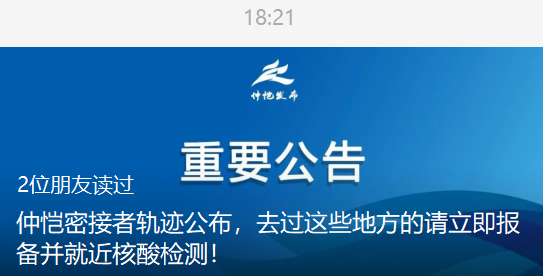 昨天晚上18时许,广东惠州仲恺高新区官方微信公众号“仲恺发布”公布《仲恺高新区关于密切接触者行程轨迹的公告》。