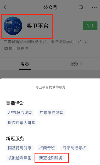 “黄码”人员请做好个人防护,尽快前往“黄码”快速检测专区进行核酸检测,具体检测医疗机构名单可在“粤卫平台”微信公众号内的“新冠检测服务”专区内查询。
