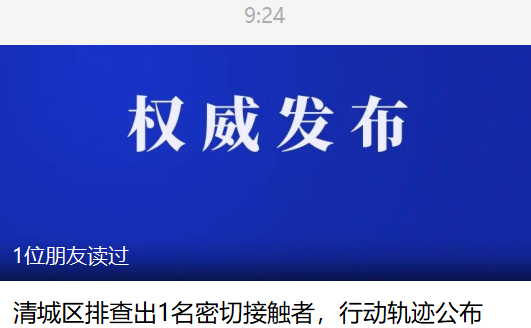 据微信公众号“清城发布”今早(9月5日)9时许消息:广东清远市清城区排查出1名密切接触者,经核实,为9月4日广州市越秀区报告的无症状感染者徐某的密切接触者。