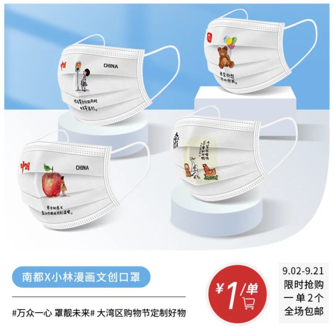 #万众一心 罩靓未来# 大湾区购物节定制好物—南都X小林漫画文创口罩限时福利活动开抢啦!1元即可抢购时尚新风潮的大湾区文创口罩1对装,复制淘口令打开手机淘宝立刻购买:1.0¥GMJIXo7sNHy¥/