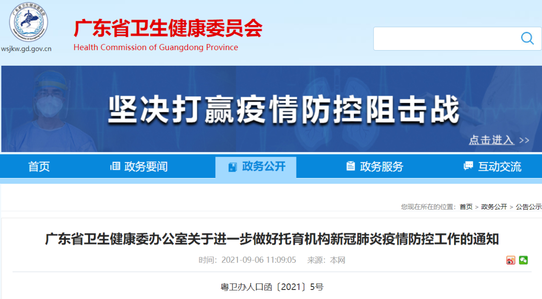 广东省卫生健康委办公室关于进一步做好托育机构新冠肺炎疫情防控工作的通知