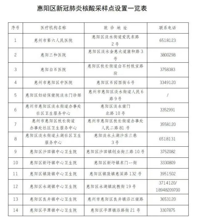 现根据省外一名新冠肺炎复阳病例的密切接触者在惠阳区的活动轨迹排查情况,如在以下时间段有到过相关区域活动的人员,请按相应要求自觉落实防控措施并尽快开展1次核酸检测。