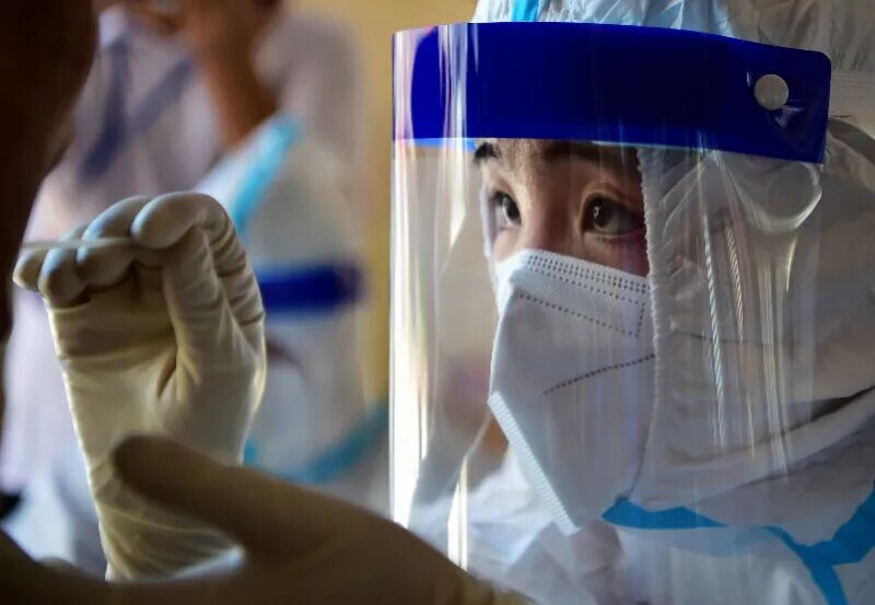 9月13日,在仙游县南桥社区核酸检测点,来自莆田涵江医院的护士进行核酸采样。新华社记者 魏培全 摄