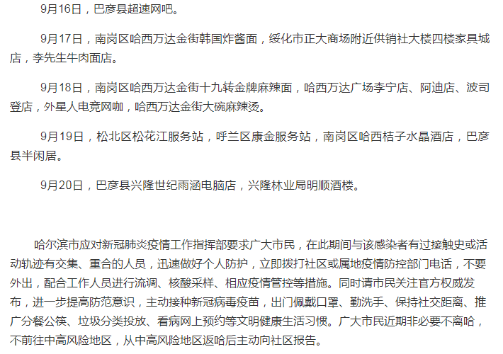 新增一阳性!轨迹涉剧本杀、密室、浴池、铁锅炖等店!哈尔滨紧急公告