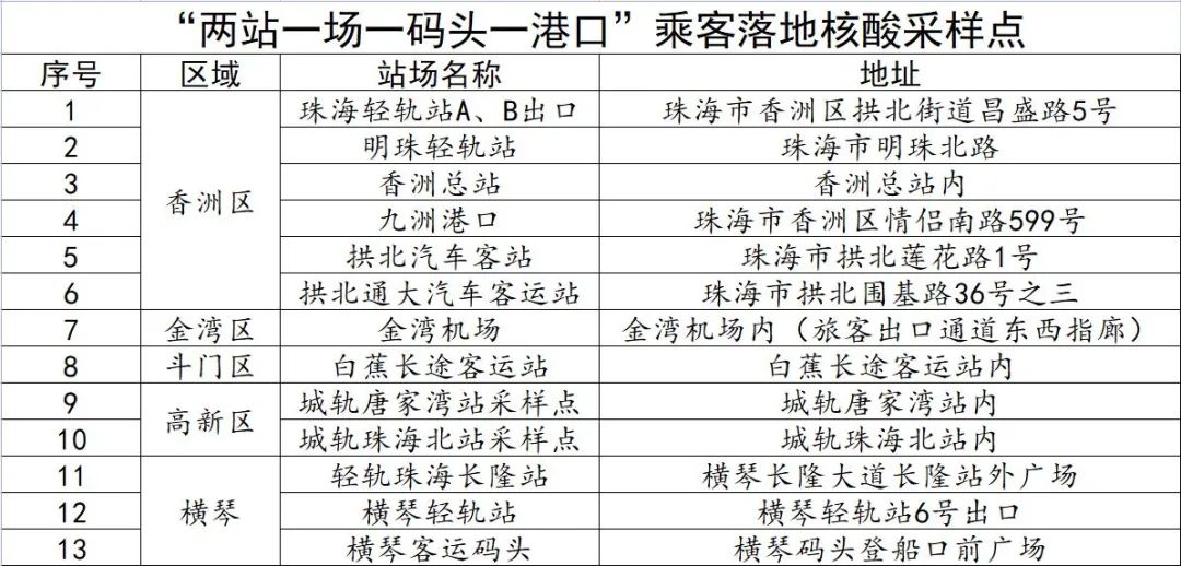 考虑到今年国庆假期、中国航展叠加造成的人流量剧增等因素,为进一步巩固珠海市得来不易的疫情防控稳定形势,珠海市将强化和延续部分航展期间的核酸检测筛查措施,其中“两站一场一港口”落地核酸检测实施期限延长至10月14日24时。