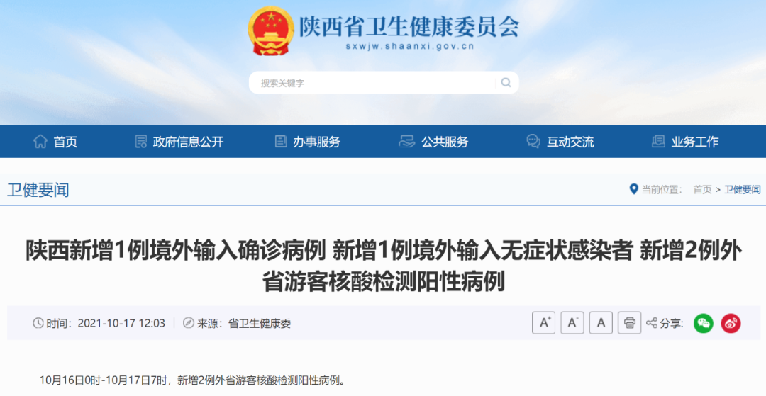今天(10月17日)中午,陕西省卫健委通报:新增2例外省游客核酸检测阳性病例。