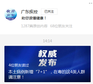 今日(18日),广东疾控发布提醒:本土病例新增“7+1”,在粤的这4类人群请注意。