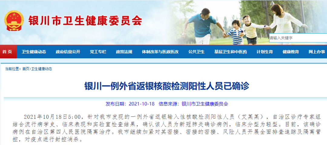 10月18日,陕西省卫健委通报,西安新增6例本土确诊病例、1例本土无症状感染者。10月18日,宁夏银川报告1例本土确诊病例,行程轨迹与西安确诊病例有交集。